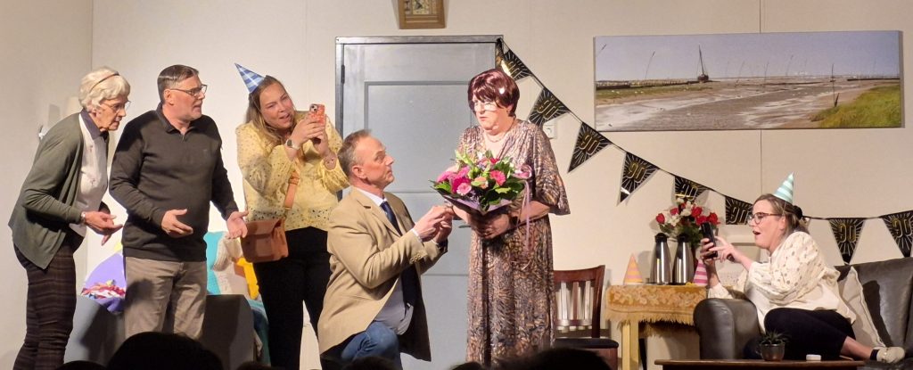 Op zaterdagavond 28 Februari 2026 stond onze toneelvereniging op de planken in het Sint Vincentius gebouw te Uithuizen. Wij voerden daar ook het driebedrijvige komische toneelstuk “De Super Super” op, geschreven door Henk Roede. Voor een goed gevulde zaal konden we het toneelstuk weer goed op de planken brengen. Alle spelers zaten weer goed in hun rol en konden het aanwezige publiek meeslepen in de grappen en grollen in supermarkt De Super Super, een winkel van niks. Na de voorstelling hield men daar nog een verloting en was er muziek van DJ Pappa…